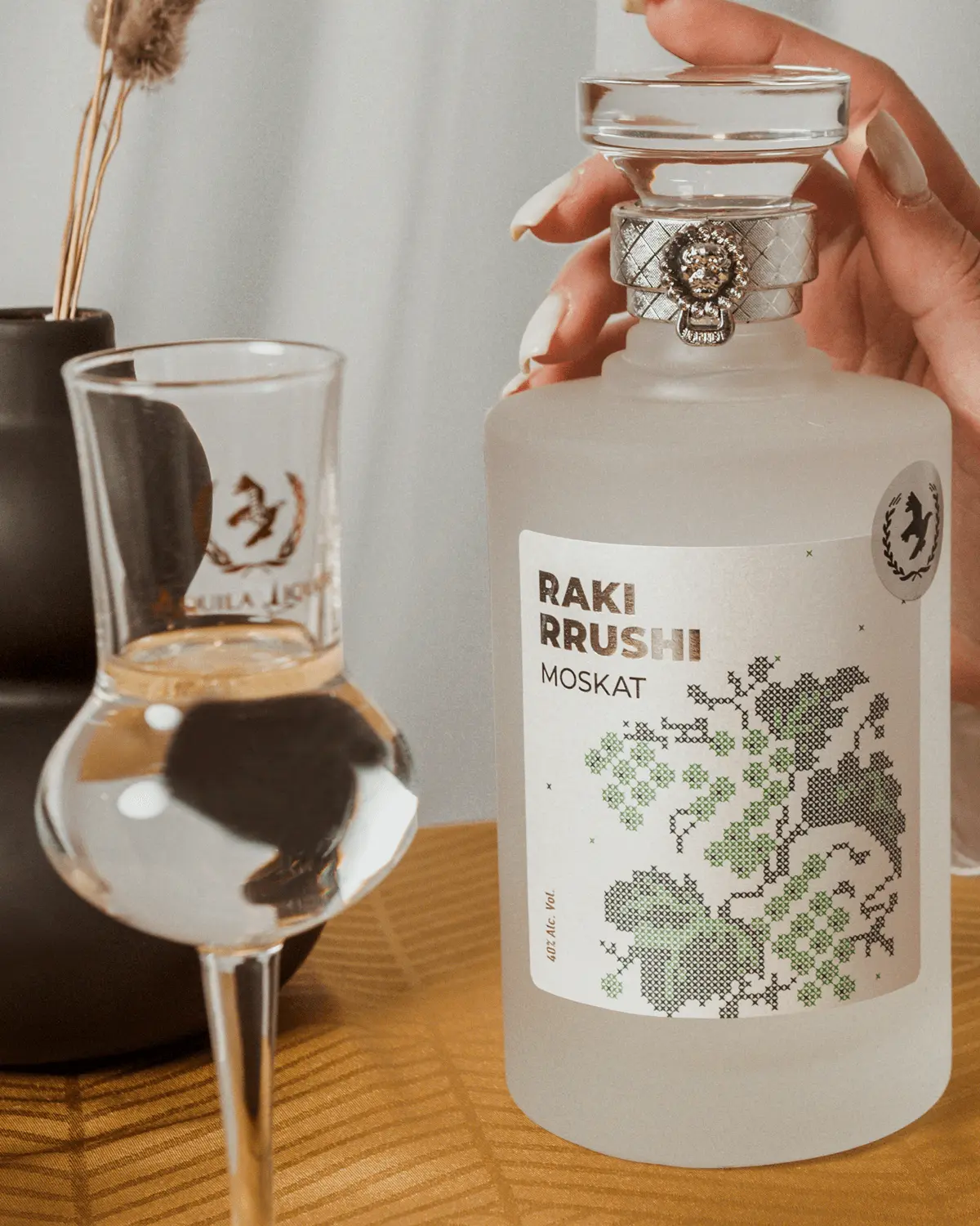 Distilati i përftuar kalon në proçesin e trajtimit në temperatura të ulëta dhe në një filtrim final. Konsumohet në temperaturë 5-10°C. Distilati stazhionohet jo më pak se 6 muaj në enë inoksi.